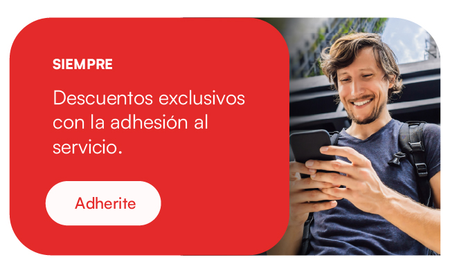 La participación en el programa Siempre Móvil está sujeta a la inscripción al programa. Tendrá un costo mensual de Tendrá un costo mensual de $ 4.803,34 precio final ($ 3.969,70 precio sin impuestos nacionales), el que será debitado de la tarjeta de crédito del cliente. La modalidad vía Notificaciones Push (App Siempre Movil)/SMS requiere que el celular adherido sea apto para dicha tecnología y que se encuentre encendido dentro de la zona de cobertura. El costo de cada SMS será el que cobre cada empresa de teléfono celular seleccionada por el cliente.